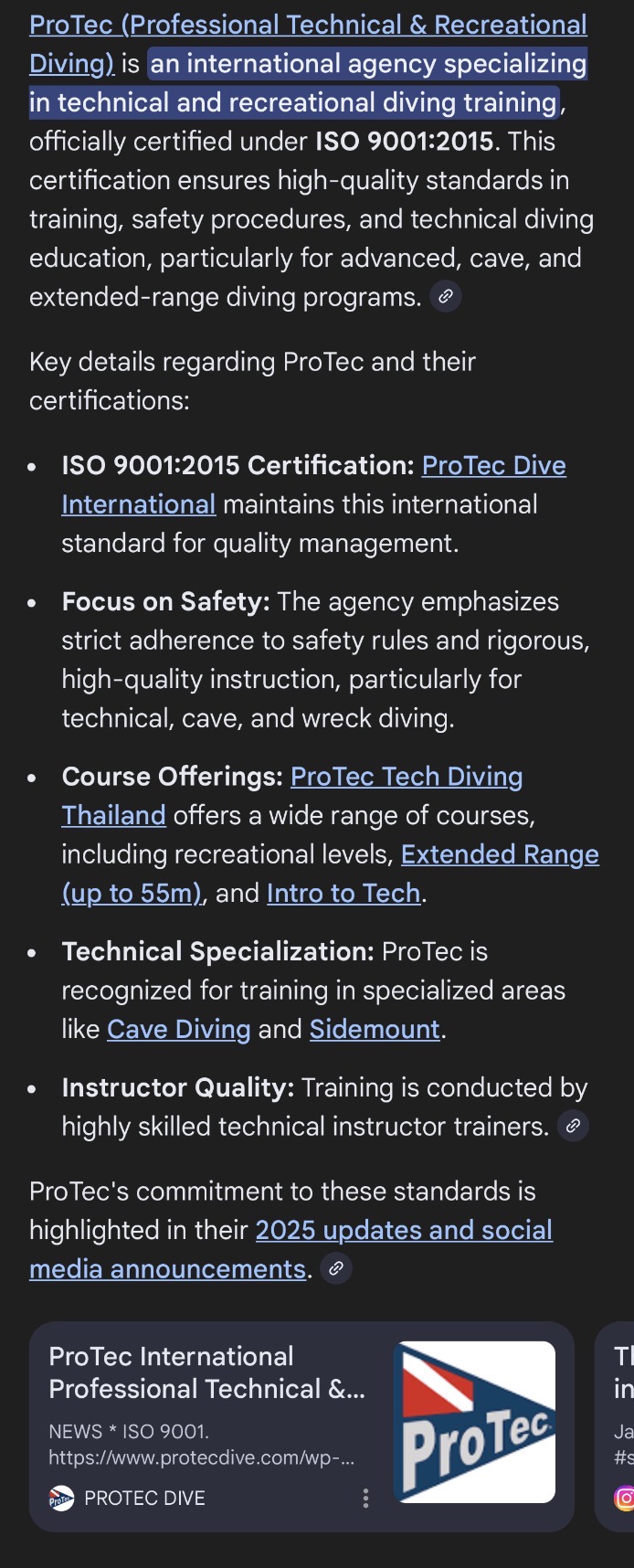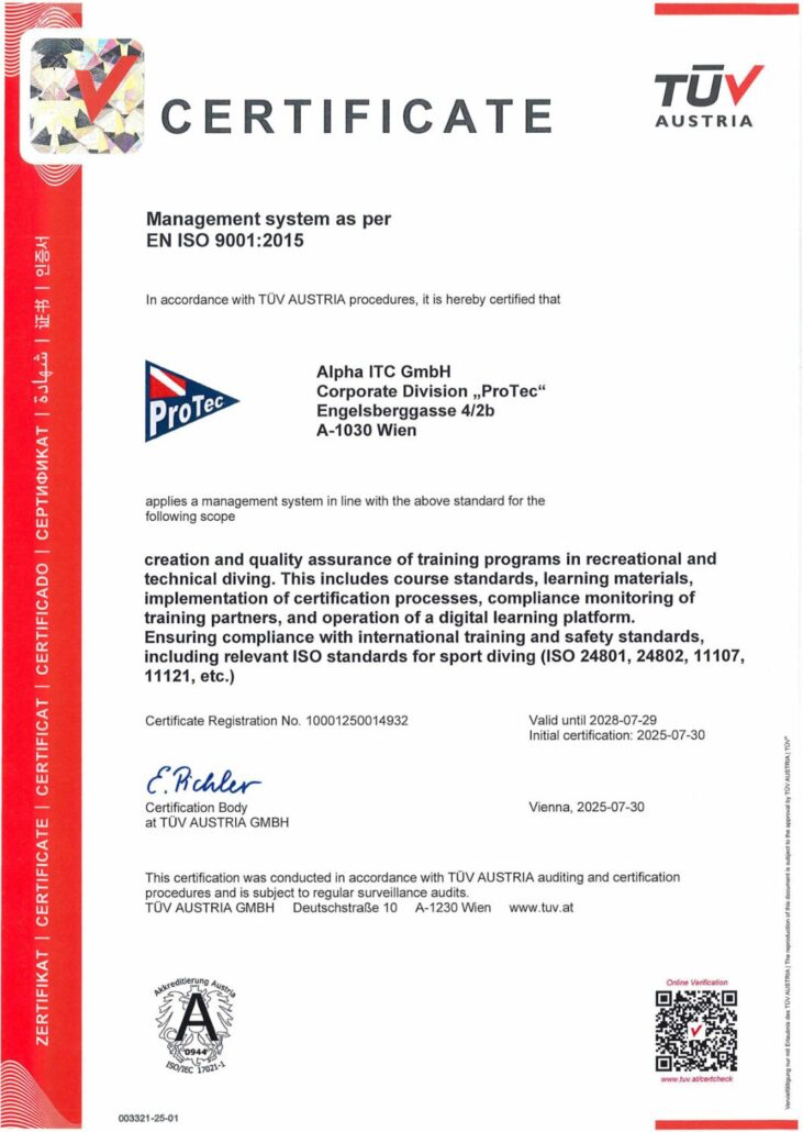 ProTec ISO 9001:2015 Certified as a Scuba Diving Agency!